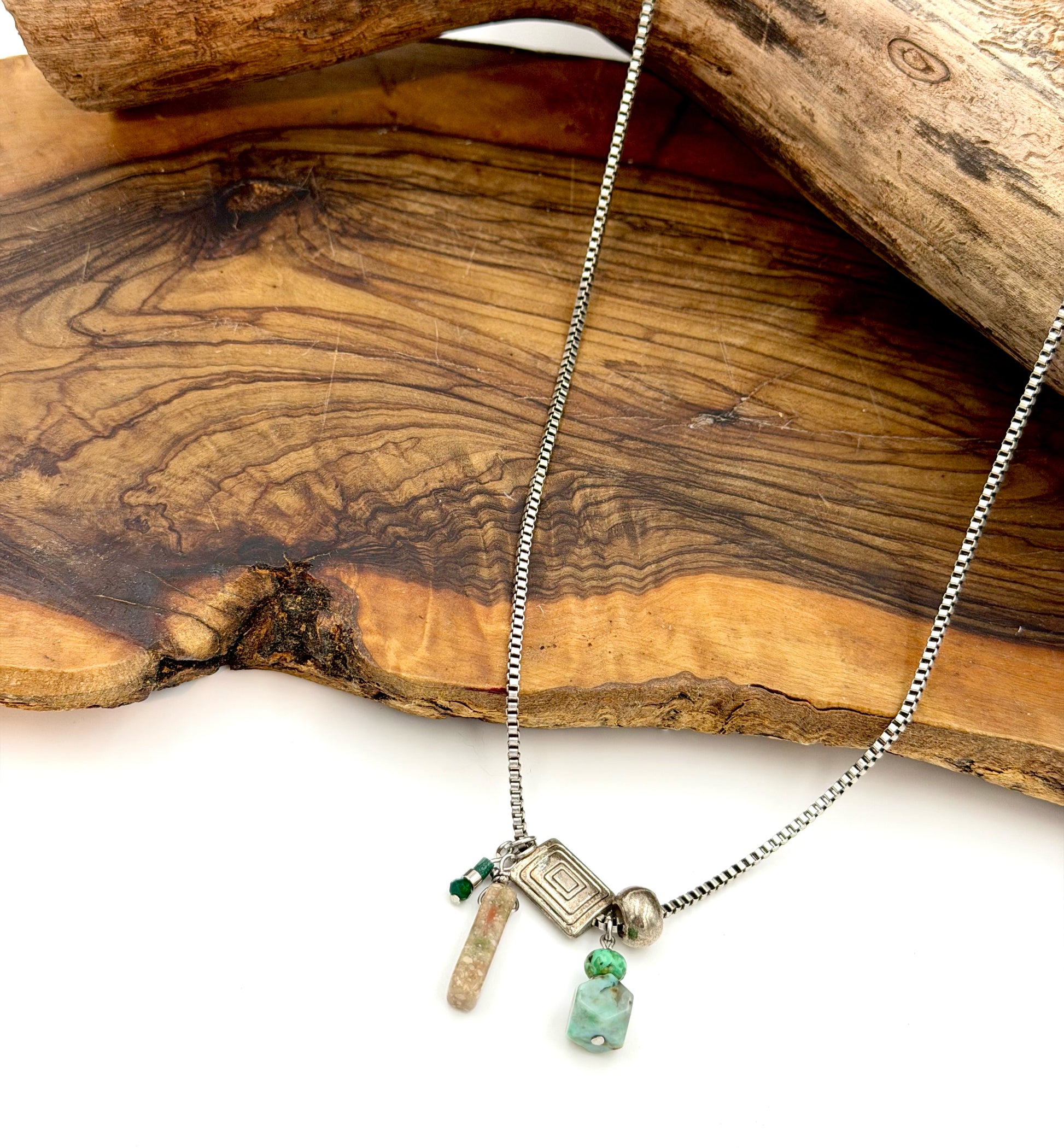 ✤ Materials: Stainless steel, African turquoise, unakite, malachite