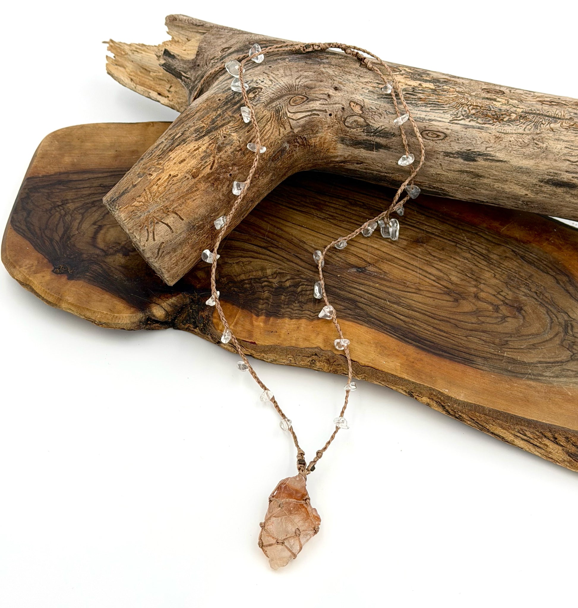Macrome necklaces with natural herkimer diamond and quartz nugget gemstones with adjustable cord