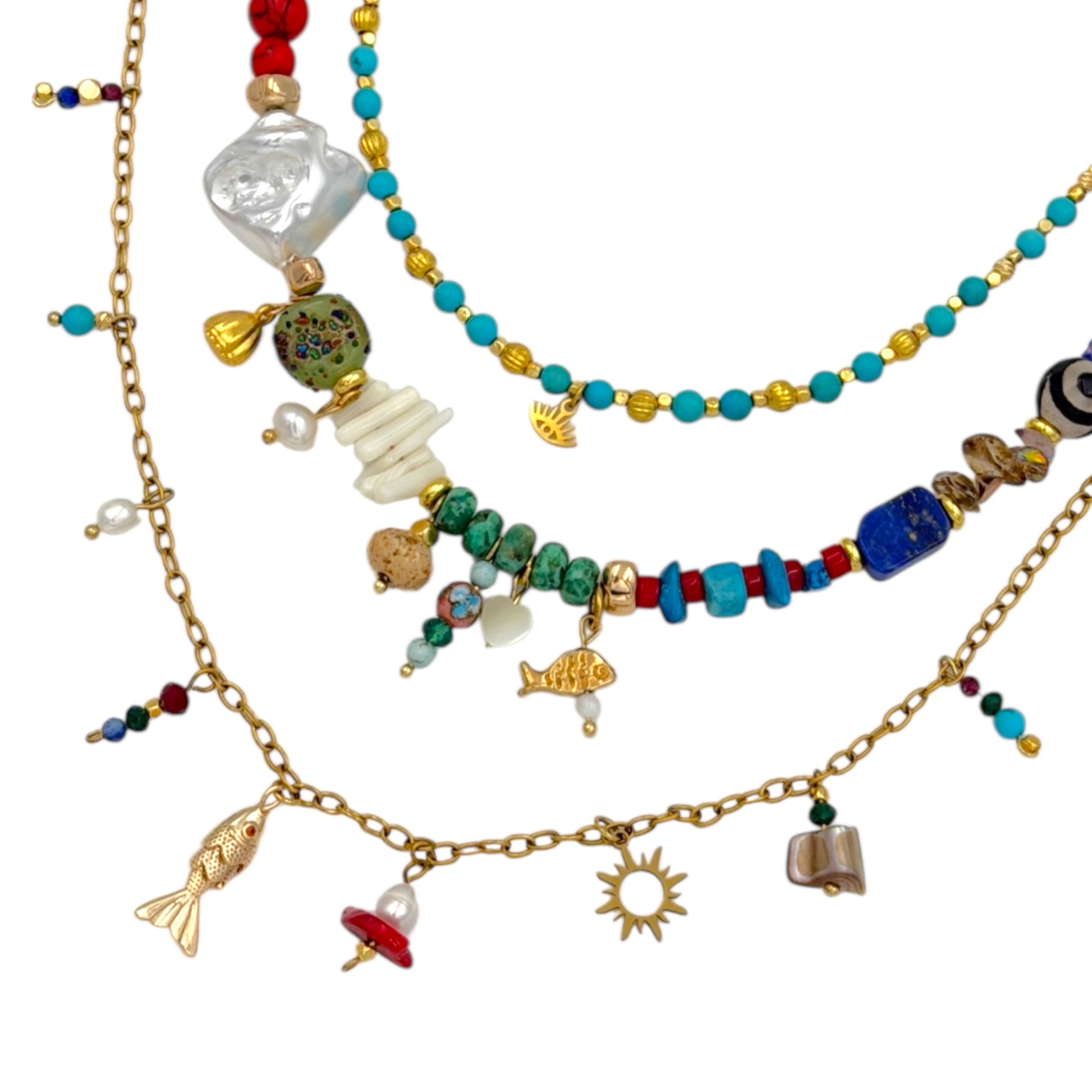 Lapis Lazuli, Turquoise, koral, mother-of-pearl, pearl, ruby emeral beads