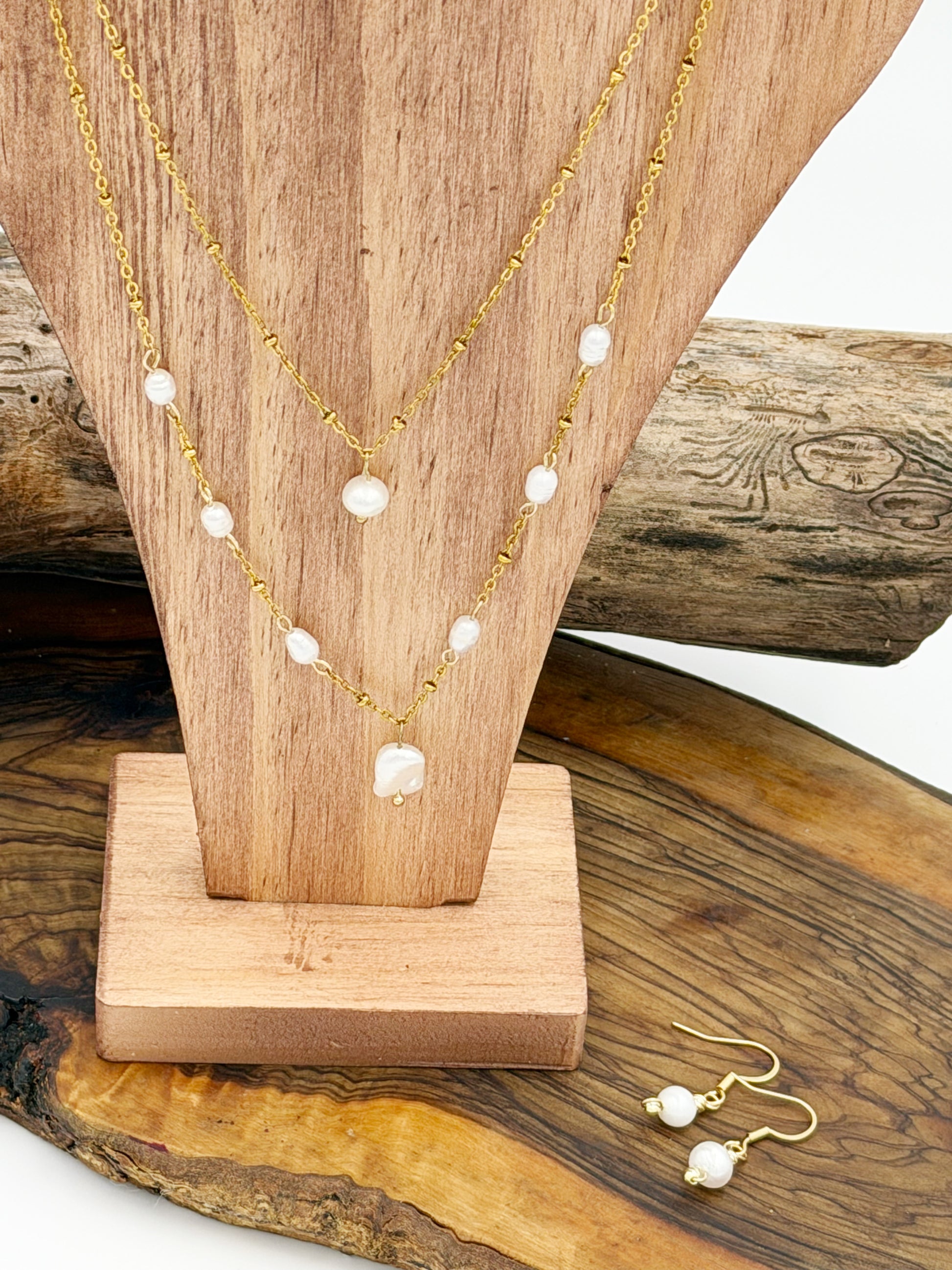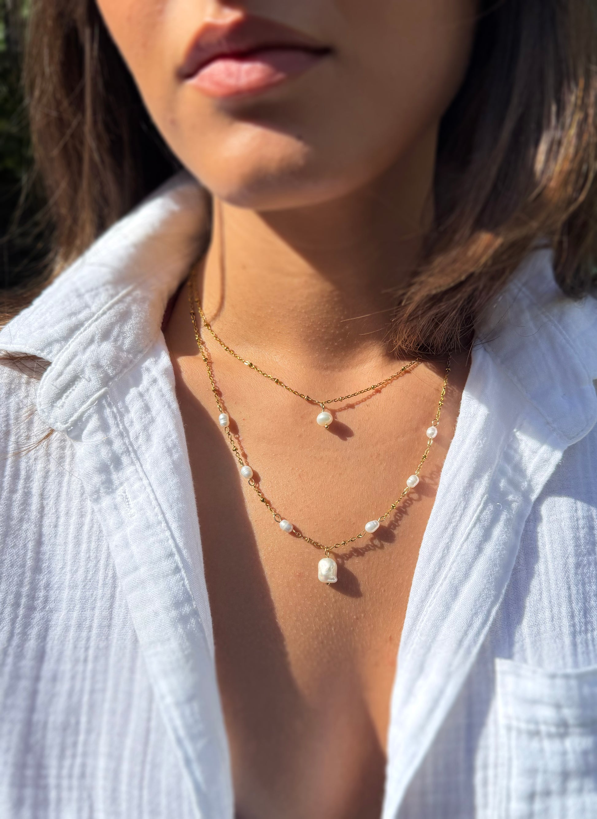 Freshwater pearls, stainless steel gold-plated beads, stainless steel chains