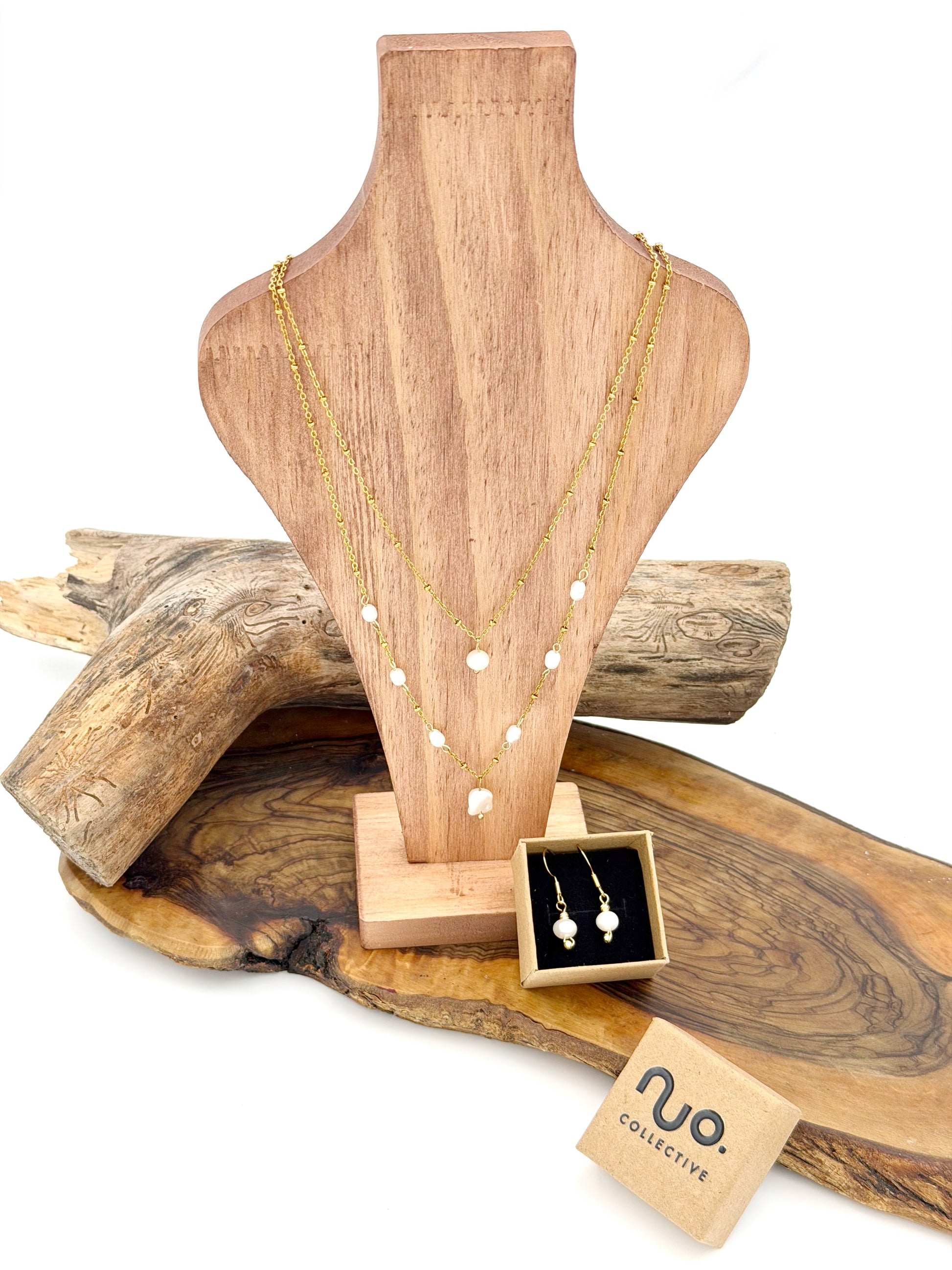 Stainless steel gold-plated hooks and beads, freshwater pearls