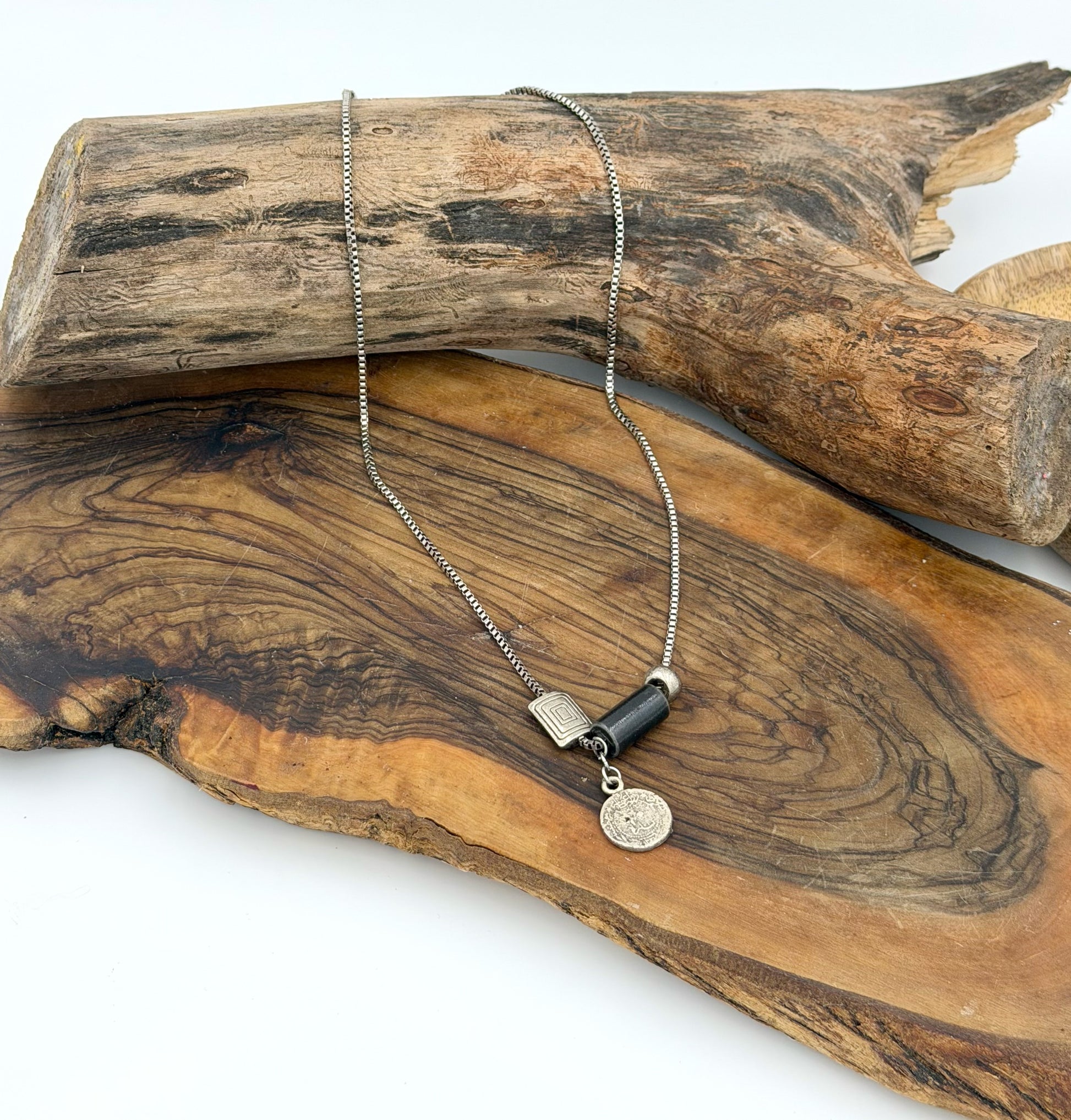 ✤ Materials: Stainless steel, vintage-style silver-plated brass pendant, ceramic bead
