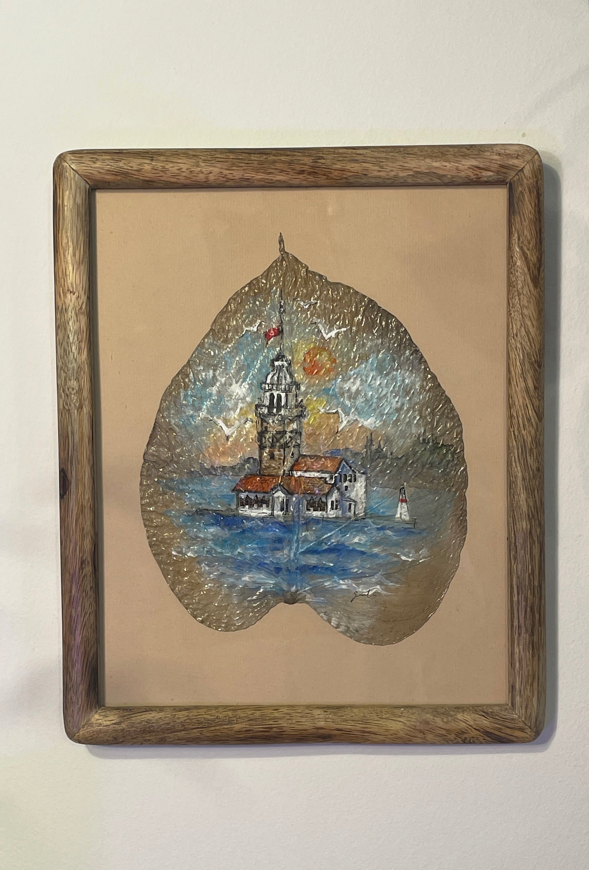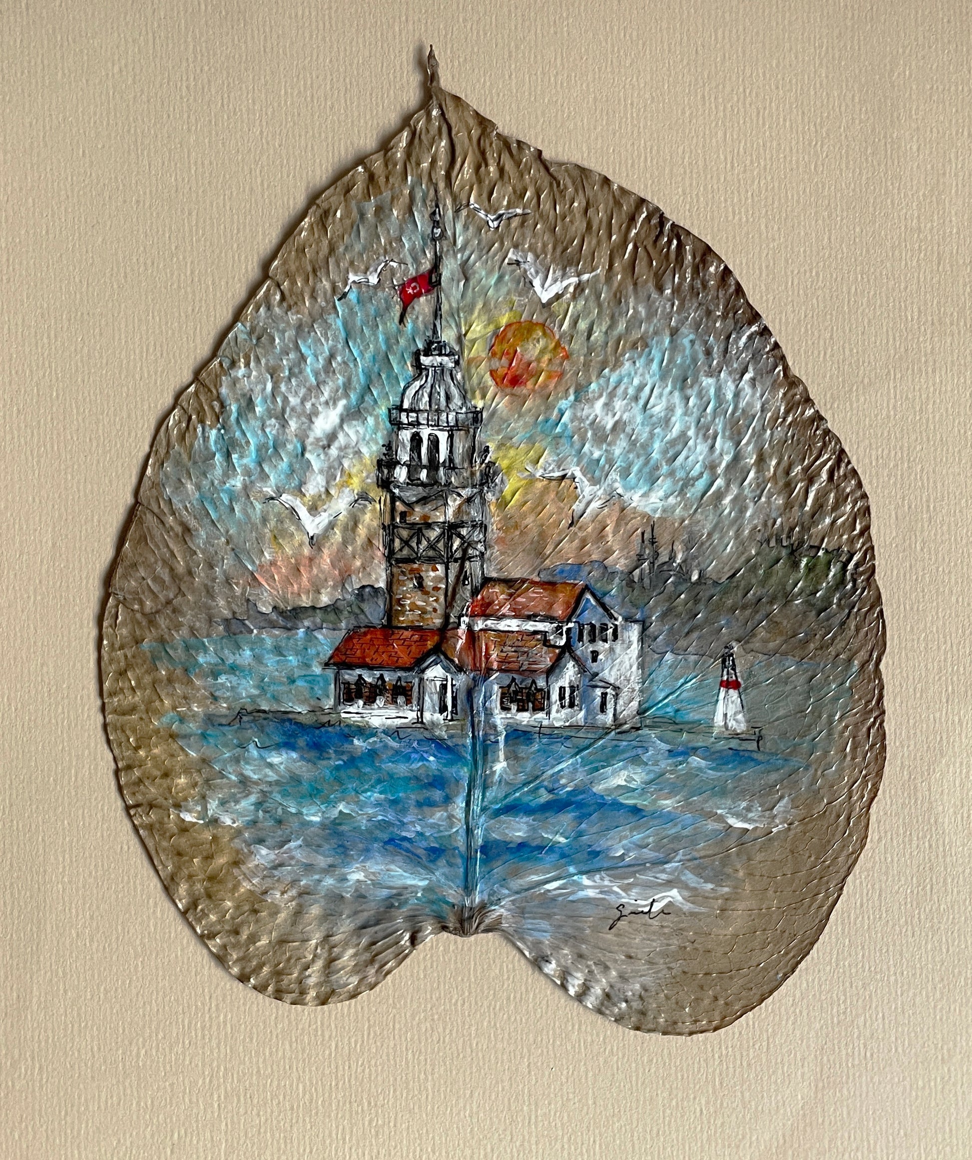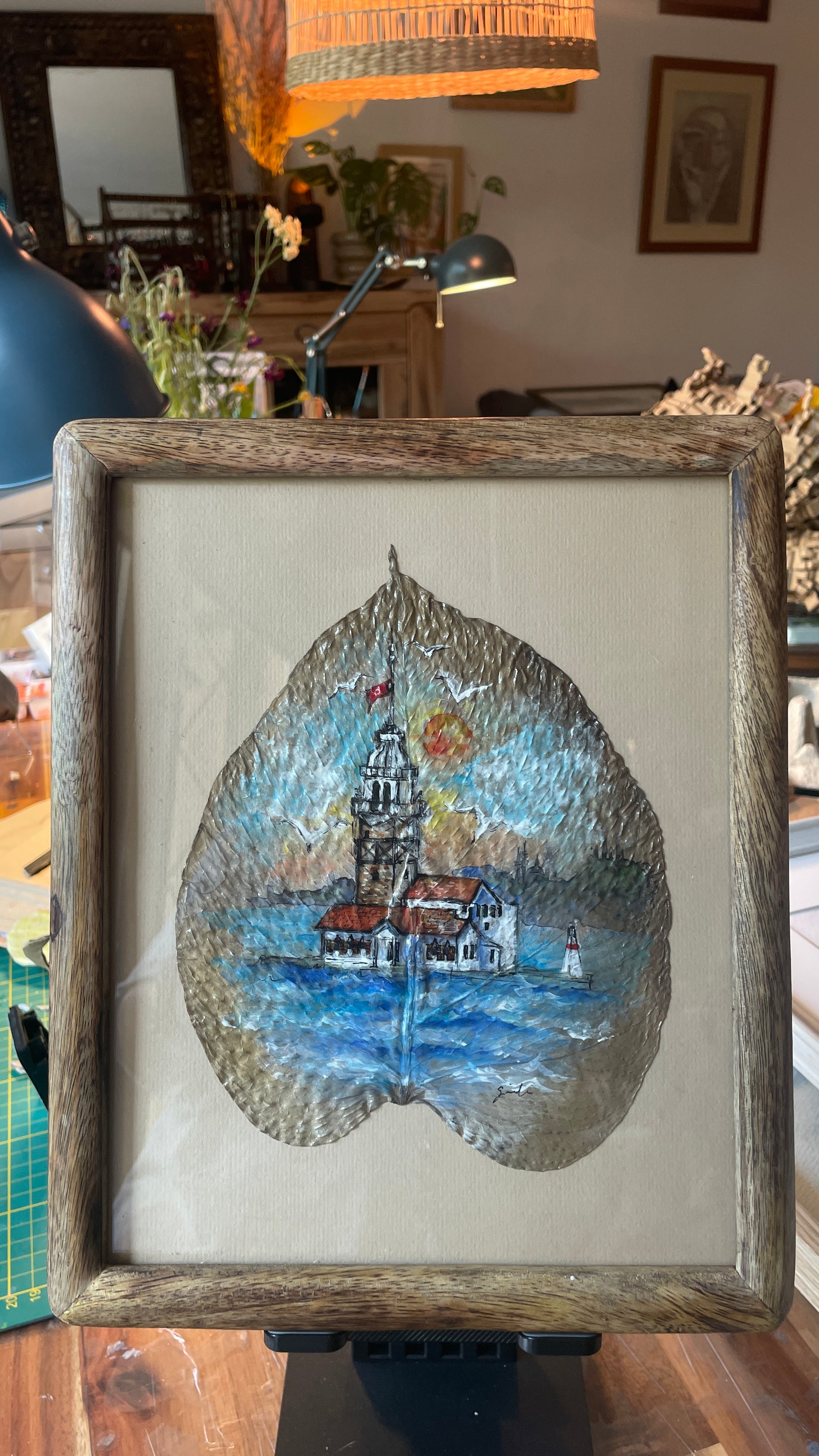 This artwork is an original hand-painted piece—not a print. It was created on a naturally dried monstera leaf that I personally prepared, using a mix of watercolor, acrylic, and fineliner pens. Each leaf is carefully selected and painted by hand, making every piece truly one of a kind.